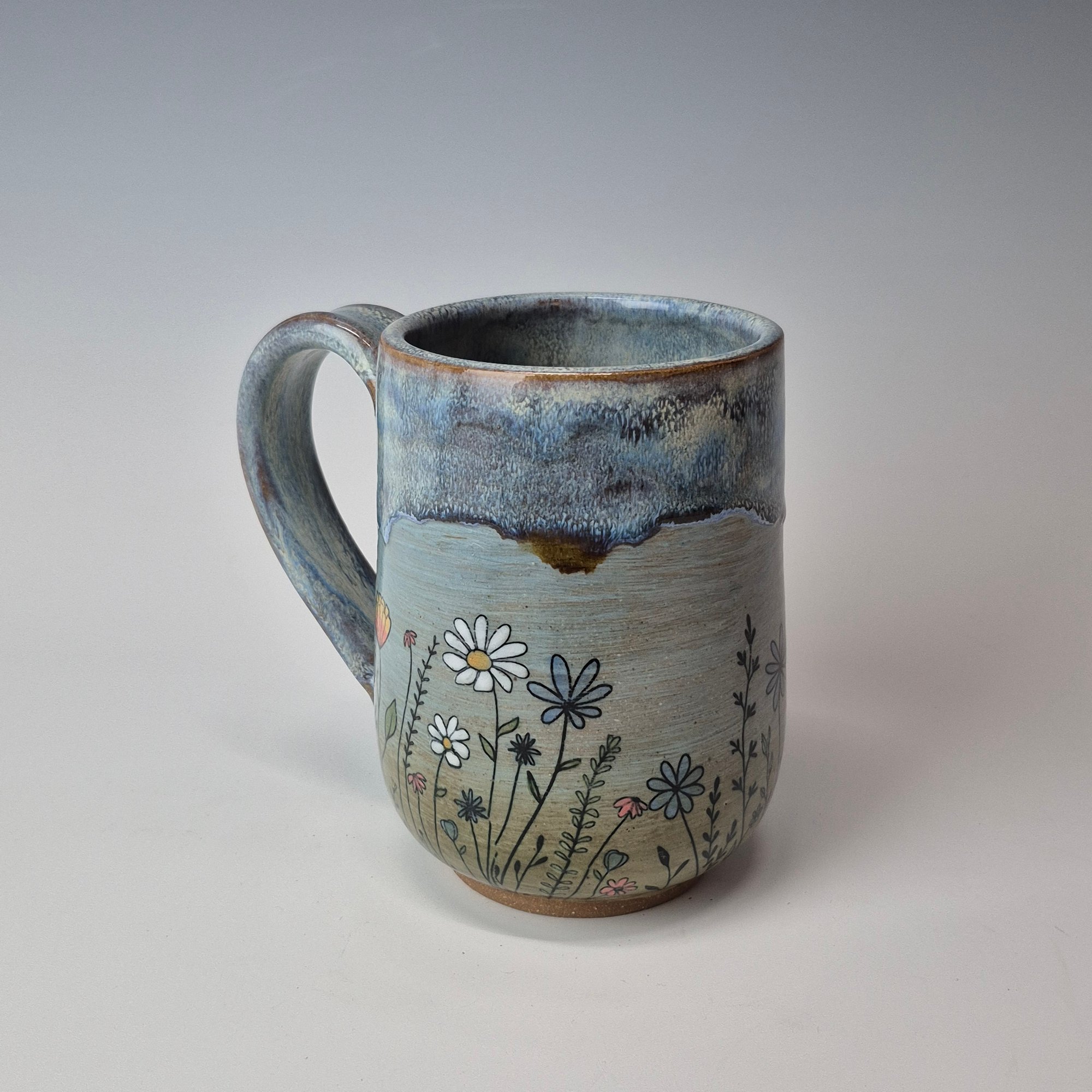 Hand-thrown, hand-stamped, and hand-signed using sturdy and functional brown stoneware clay manufactured in Montana. Each piece is hand-brushed with at least 6 coats of glazing, ensuring a durable finish. This pottery is built to last, made to be used and bring a little smile to your day.