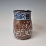 Hand-thrown, hand-stamped, and hand-signed using sturdy and functional red stoneware clay manufactured in Canada. Each mug is hand-brushed with at least 6 coats of glazing, ensuring a durable finish. These mugs are built to last, made to be used and bring a little smile to your day.