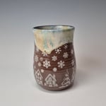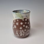 Hand-thrown, hand-stamped, and hand-signed using sturdy and functional red stoneware clay manufactured in Canada. Each mug is hand-brushed with at least 6 coats of glazing, ensuring a durable finish. These mugs are built to last, made to be used and bring a little smile to your day.