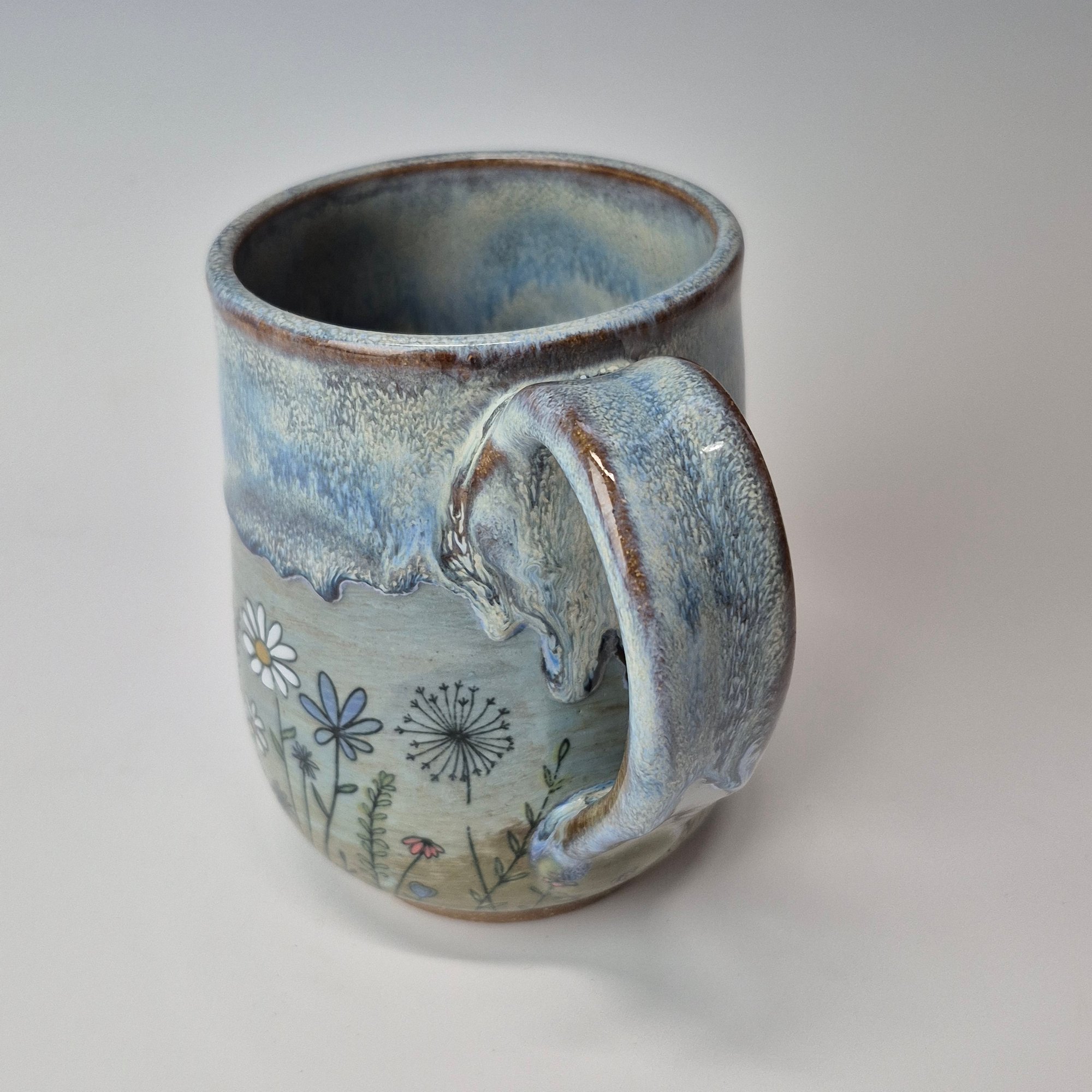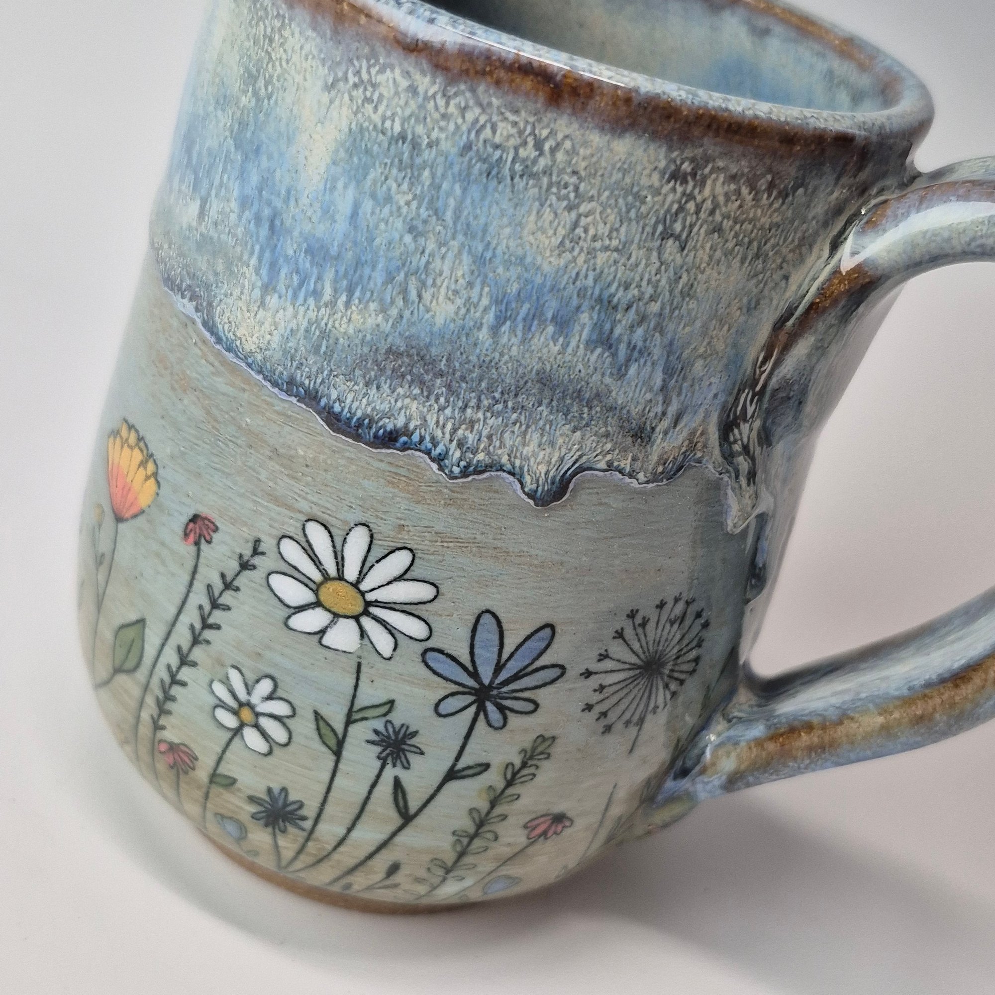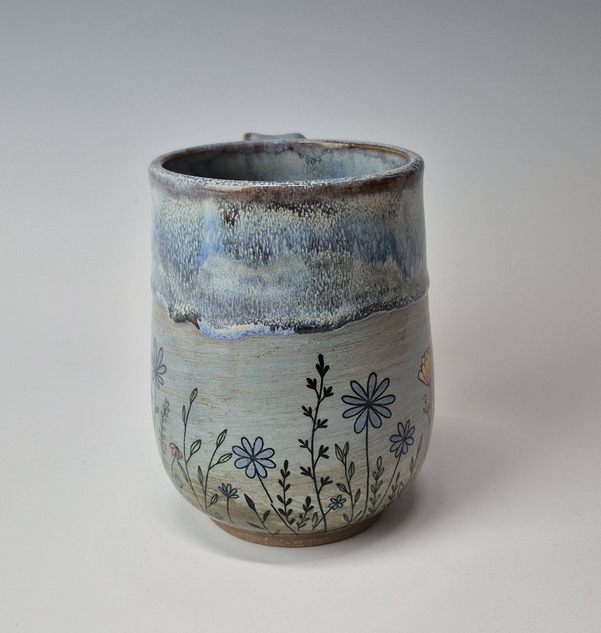 Hand-thrown, hand-stamped, and hand-signed using sturdy and functional brown stoneware clay manufactured in Montana. Each piece is hand-brushed with at least 6 coats of glazing, ensuring a durable finish. This pottery is built to last, made to be used and bring a little smile to your day.