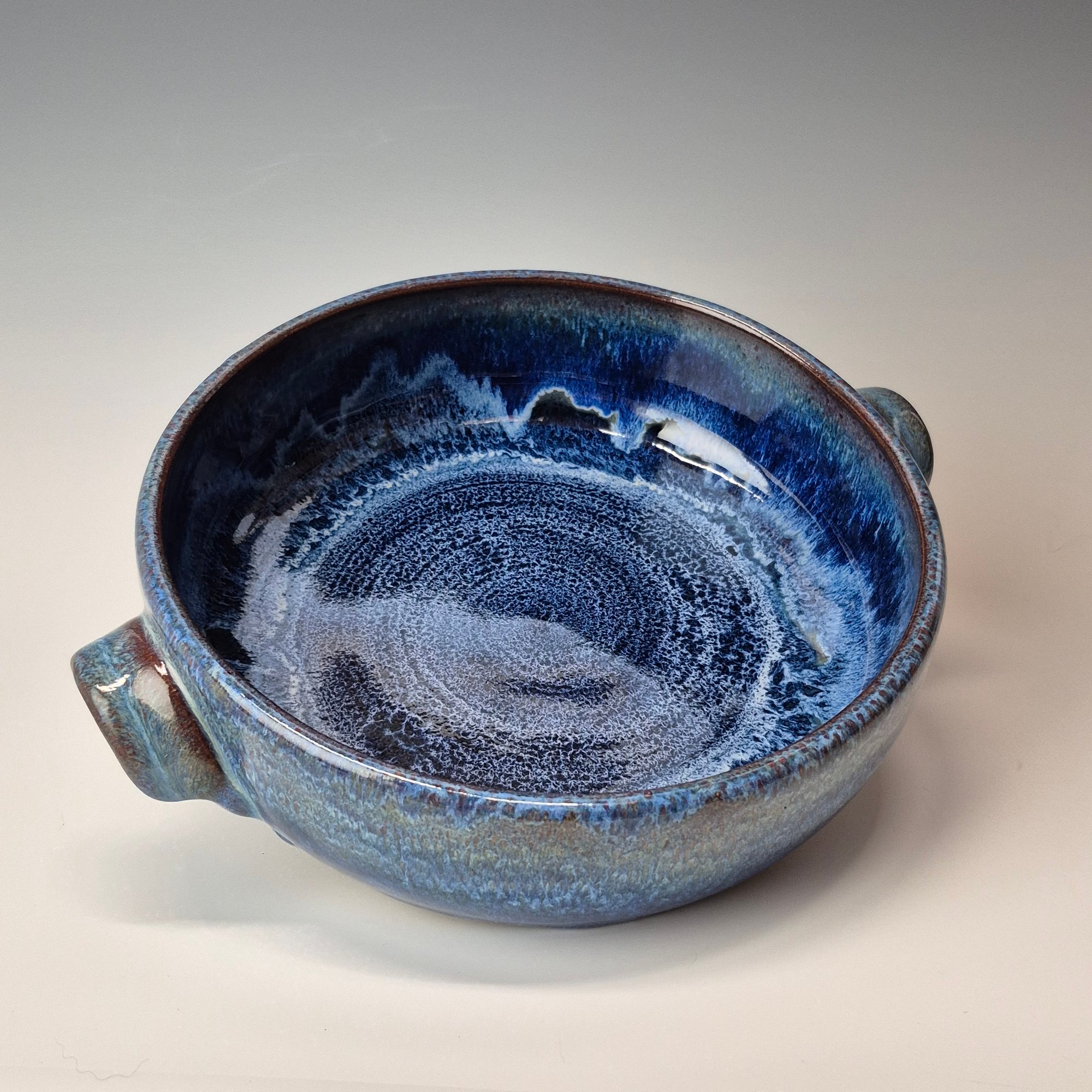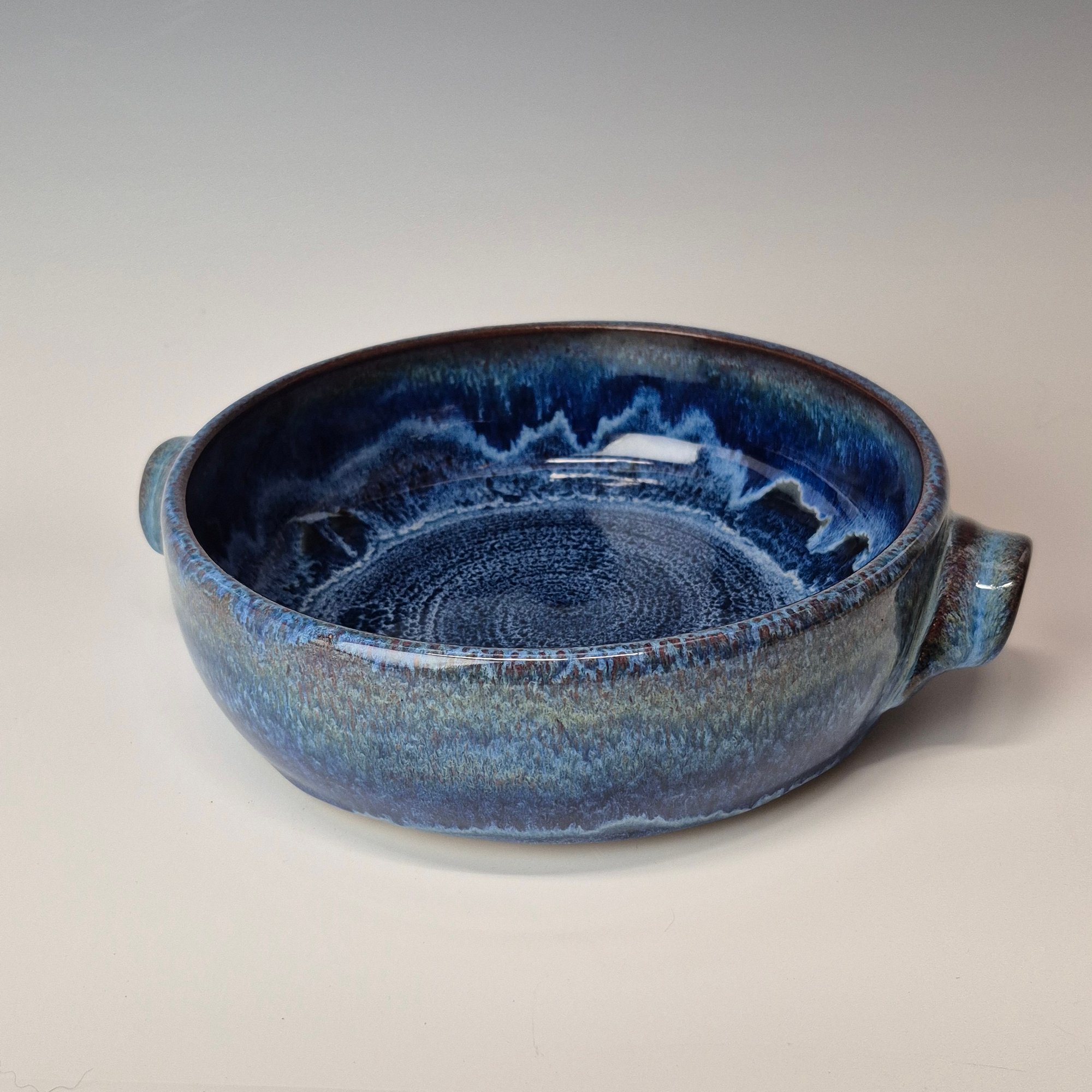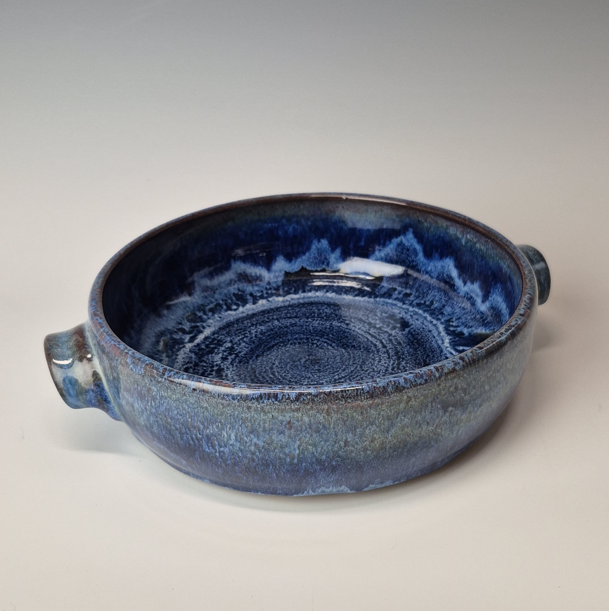 8" Baking Dish with handles, Bluebird Skies with rim color (Cobolt) 012026