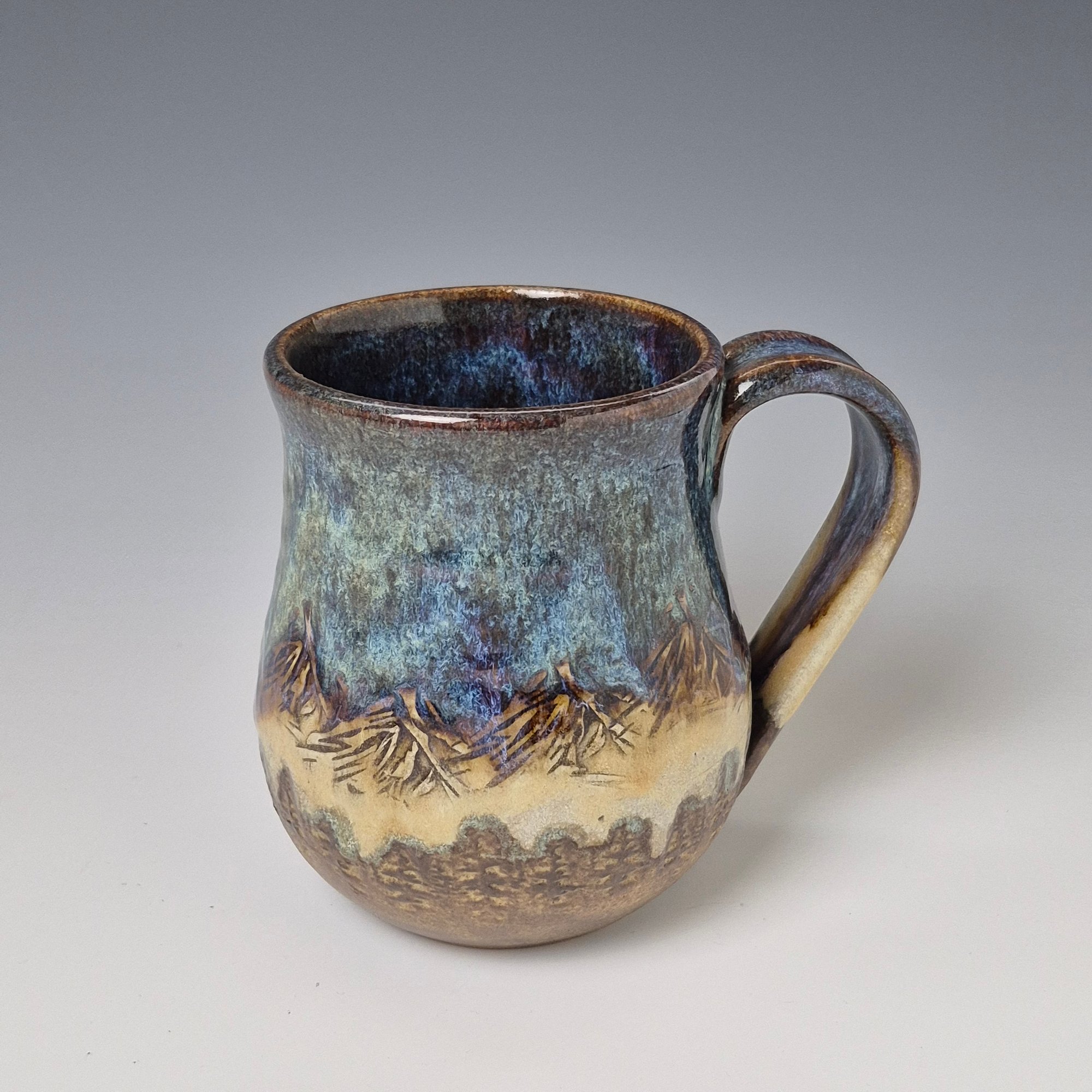 This shape was designed for hugging a tall mug of your favorite brew, warming hands, holding the cup close to your nose for a long slow inhale of yummy smells, and long sips while looking off and pondering your next adventure. Easy drinking and lots of pondering....