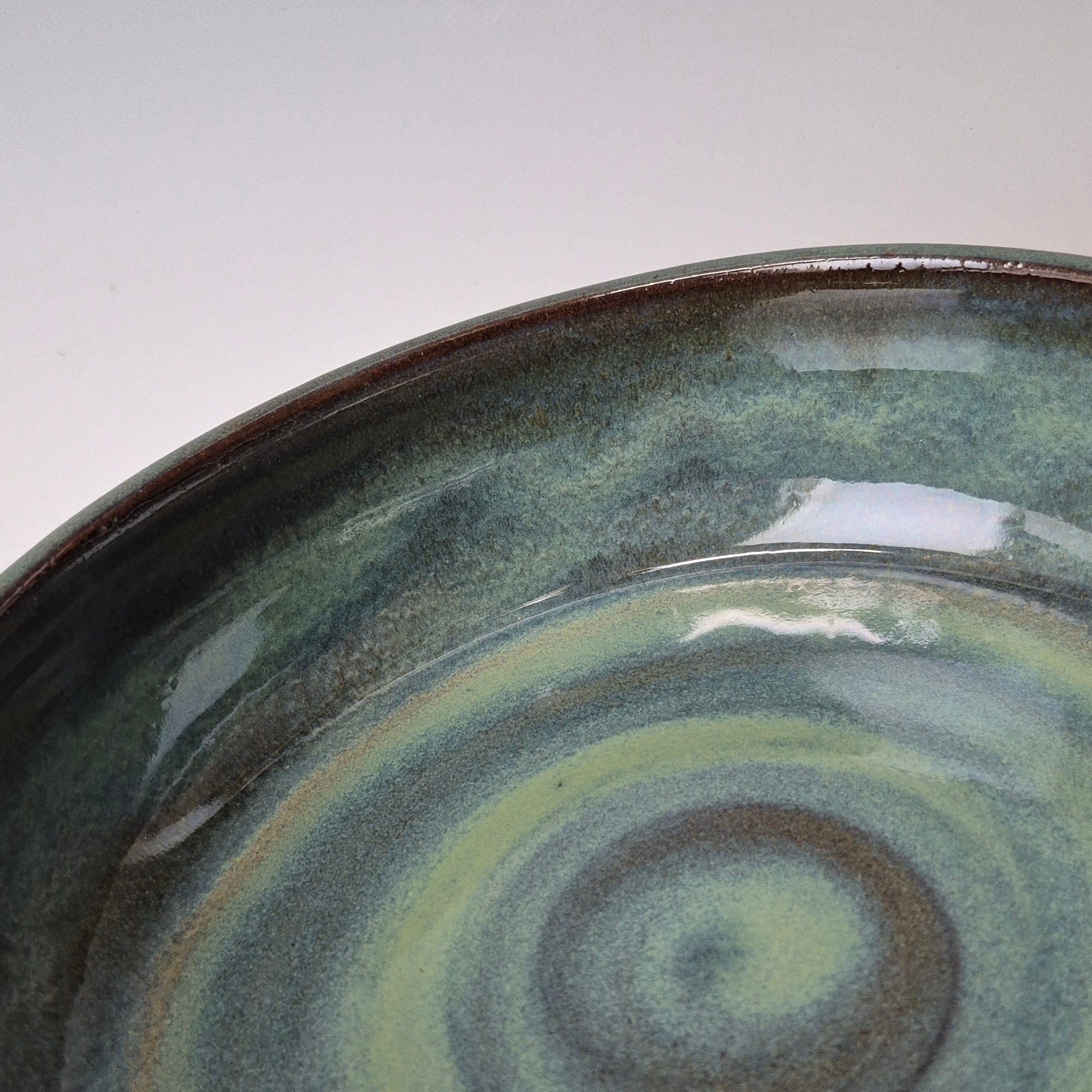 I create in small batches. Each piece is thrown in the likeness of the next, hand-crafted, and with hand-brushed glazing. I hope you’ll agree variations in color, small marks from the minerals and stone in the clay, or slight sways in design resulting from working with natural materials create the charm expected and treasured in handmade pottery.
