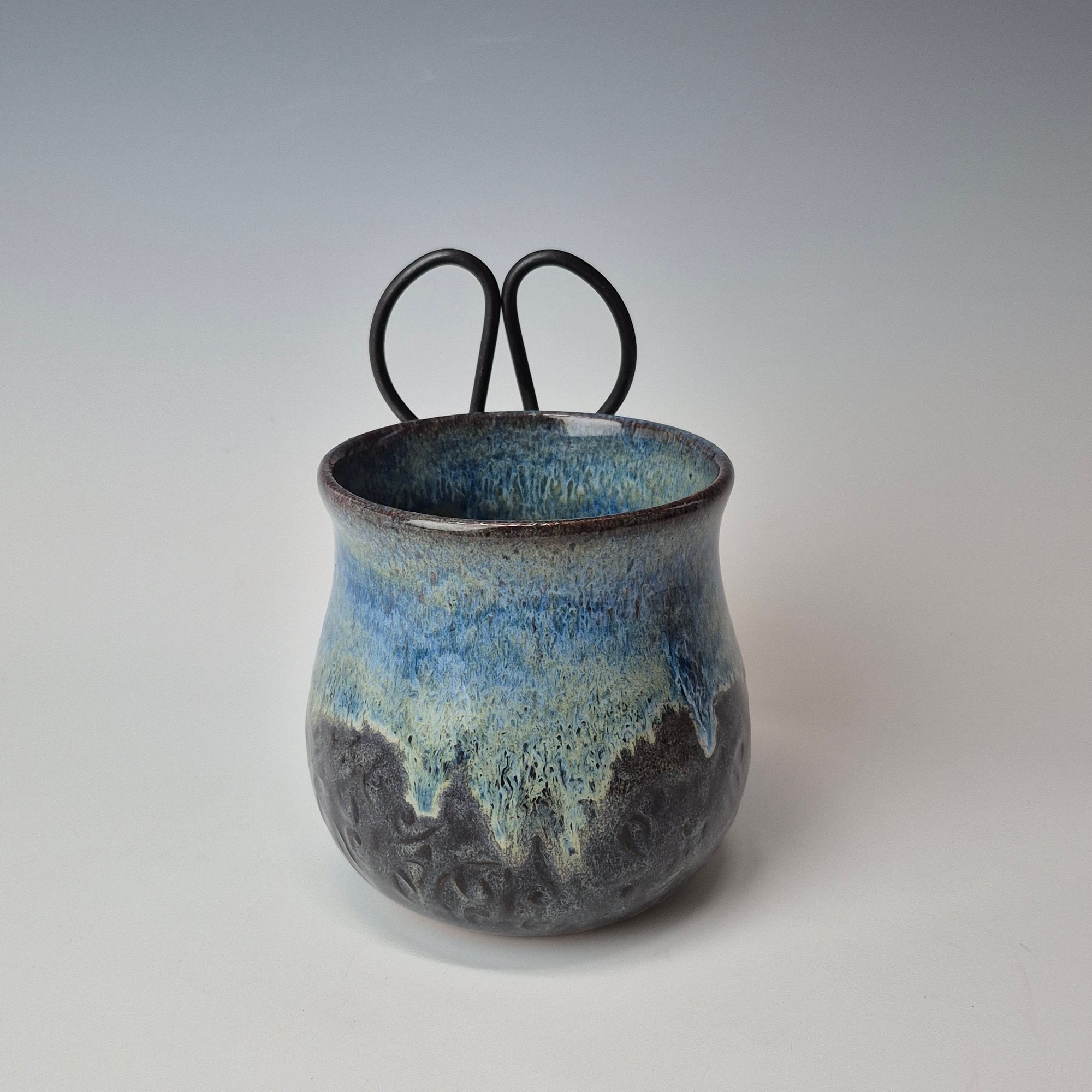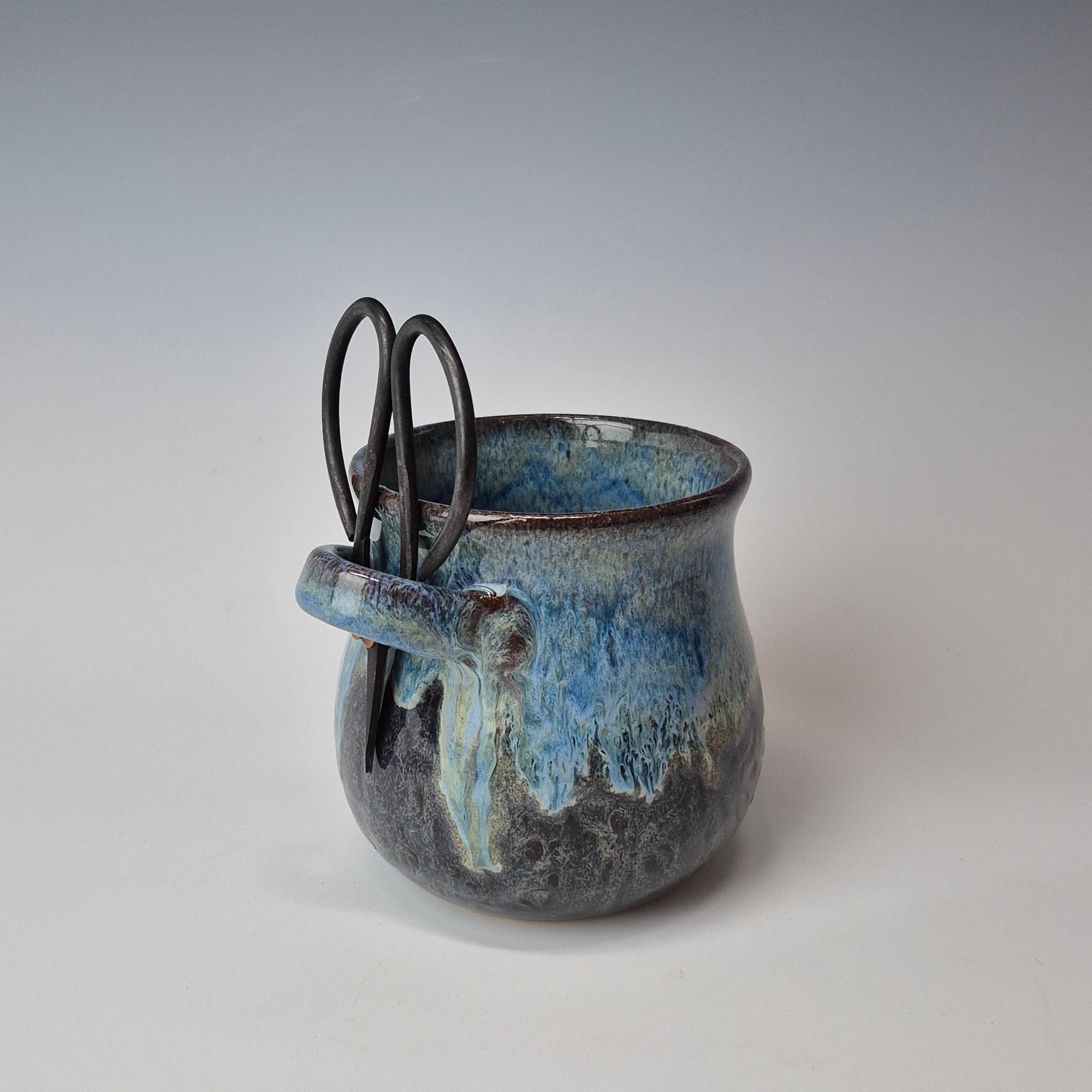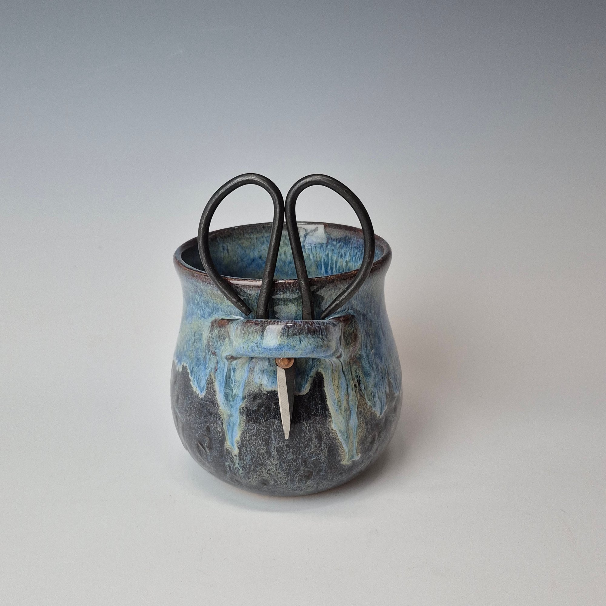 Small Crafter's Catch-all with Bonsai Snips: Textured Night Sky (Dark Blue) with Blue rim