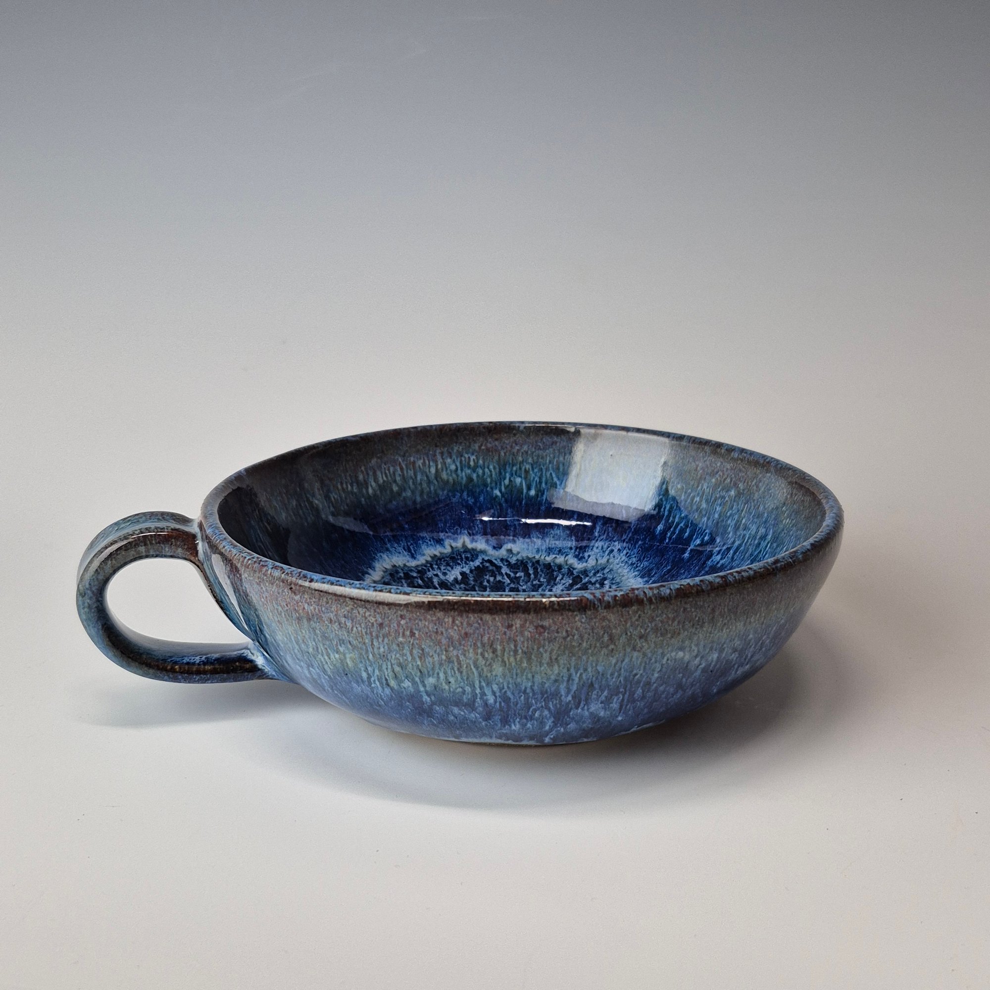 Thumb-handled Bowl: Bluebird Skies (Cobolt) with colored rim 01202602