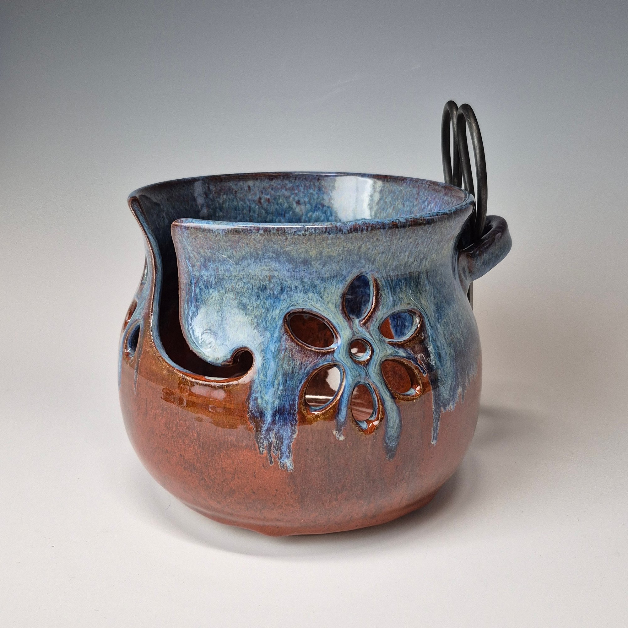 Specially designed by a knitting, crocheting, hand-spinning potter to keep your venturing yarn balls in check while you ponder the simple pleasures in life.